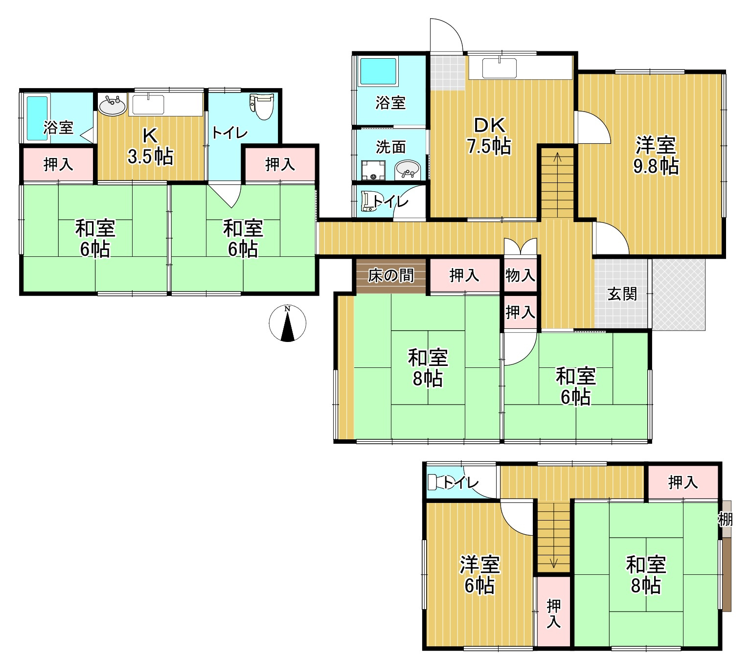 2世帯住宅としてもご利用できる7DKKの間取りです!